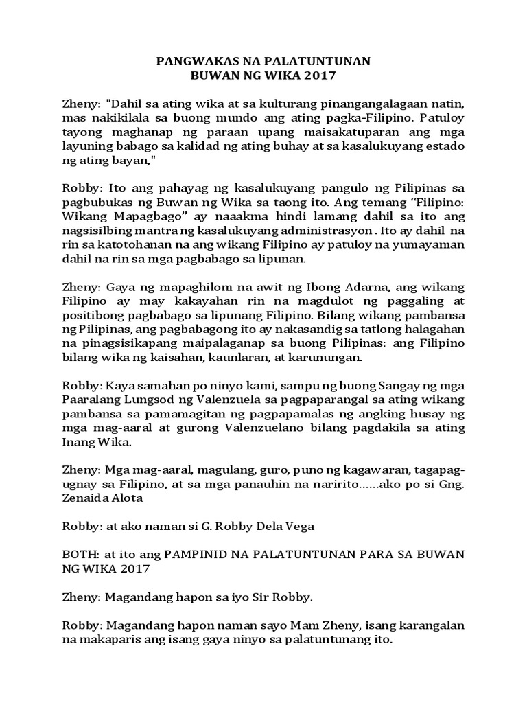 Iskrip Para Sa Pangwakas Na Palatuntunan Buwan Ng Wika 2017