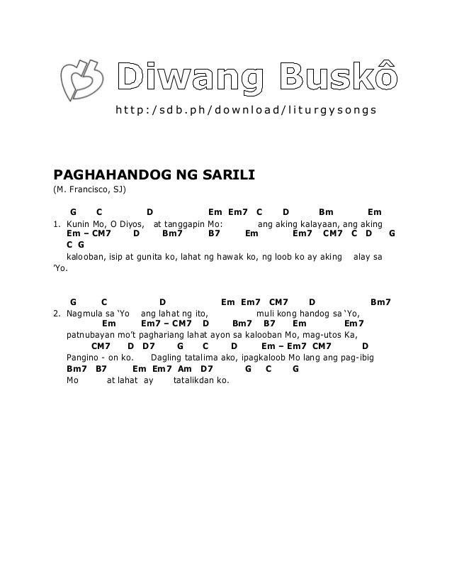 Walang sino man ang nabubuhay Para sa sarili lamang Walang sino man ang namamatay Para sa sarili lamang Tayong lahat ay may pananagutan sa isat isa Tayong lahat ay tinipon ng diyos na kapiling niya Sa ating pagmamahalan at paglilingkod sa kanino man Tayo ay magdadala ng balita ng kaligtasan repeat Sabay sabay ng magaawitan ang mga bansa.