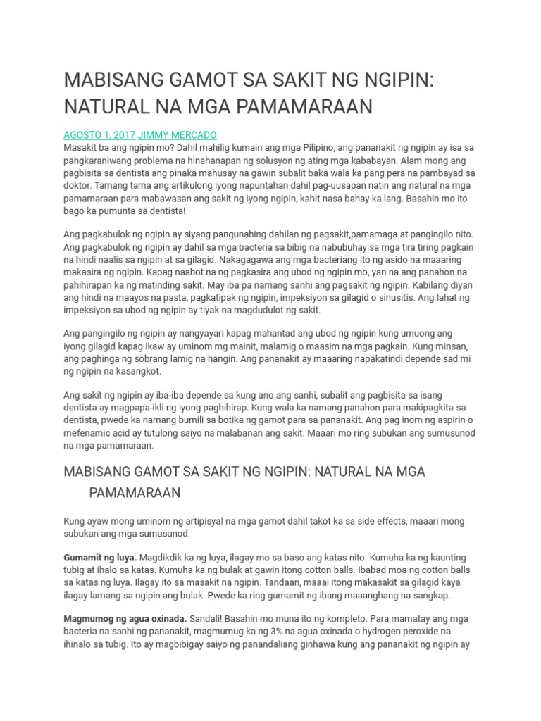 Mabisang Gamot Sa Sakit Ng Ngipin