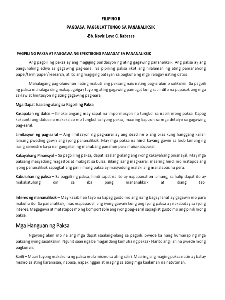 Iwasan ang malawak na paksa. Magandang pamagat para sa research paper THESIS Pananaliksik Tagalog 406067 views. Ang mga paksang ito ay nakaugnay sa mga layunin.