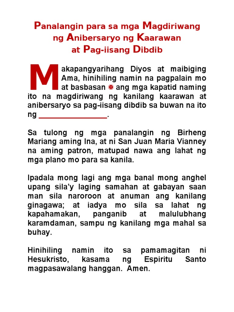 Ipakita mo sa kanila Panginoon na ang landas tungo sa kapayapaan ay ang landas tungo sa Iyo. Opening prayer for the birthday. Halimbawa ng Isang Panalangin.