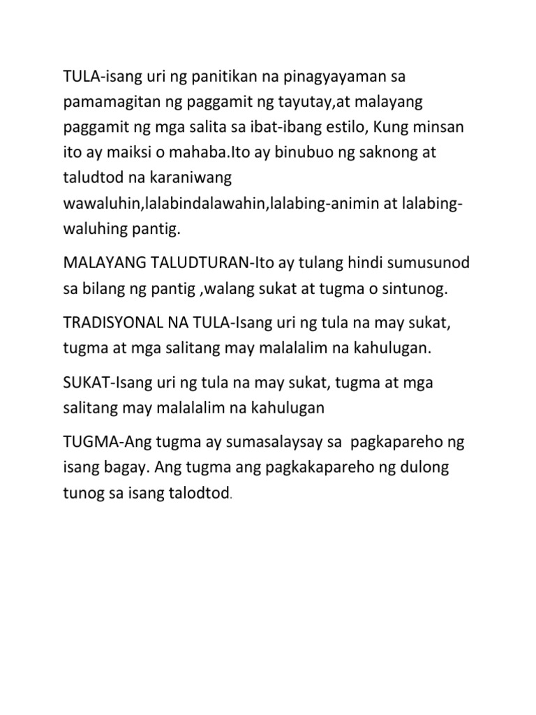 Anyo At Uri Ng Tula At Kahulogan Ng Balagtasan